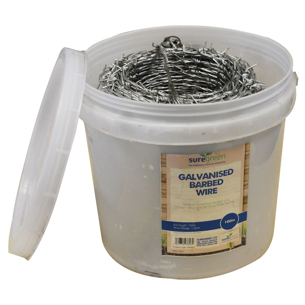- Supplied in a handy plastic bucket that makes the barb wire safe to transport and store.