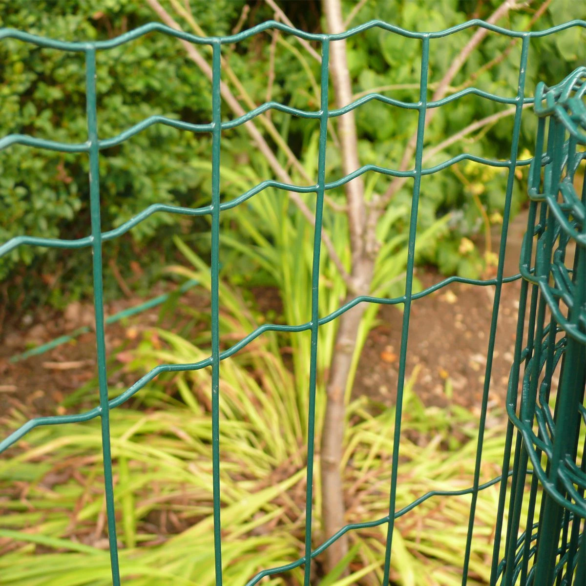 Green PVC-coated border garden fencing mesh is supplied as 0.9m and 1.2m high rolls with a rectangular mesh size of 75mm x 100mm. The crimped design provides additional strength to the metal fencing. The steel wire core diameter is 1.6mm which is then coated with PVC to provide an attractive, corrosion-resistant surface.