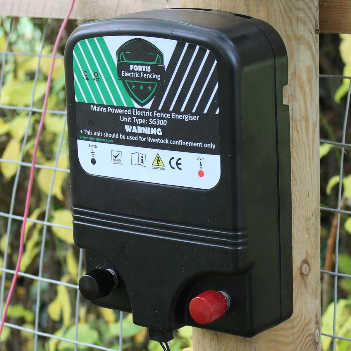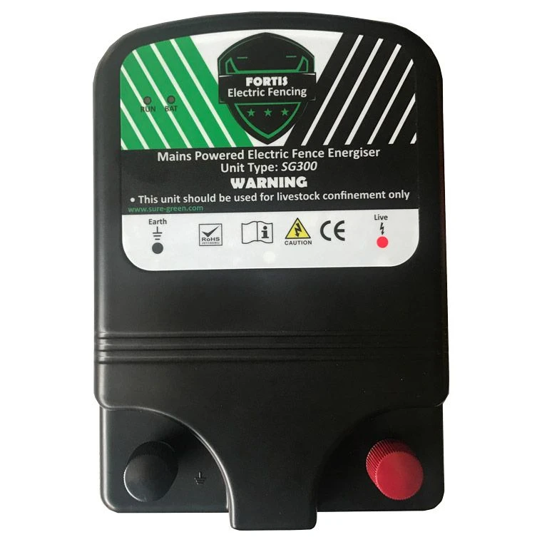 FORTIS SG300 is a dual input electric fence energiser, giving you the option of powering it via a battery or by using mains power. This makes it a versatile option for your electric fence. This is a powerful energiser packing a 12,000V punch (4J).