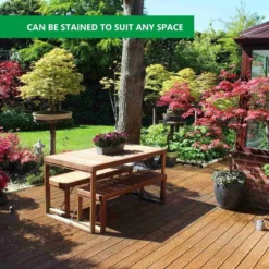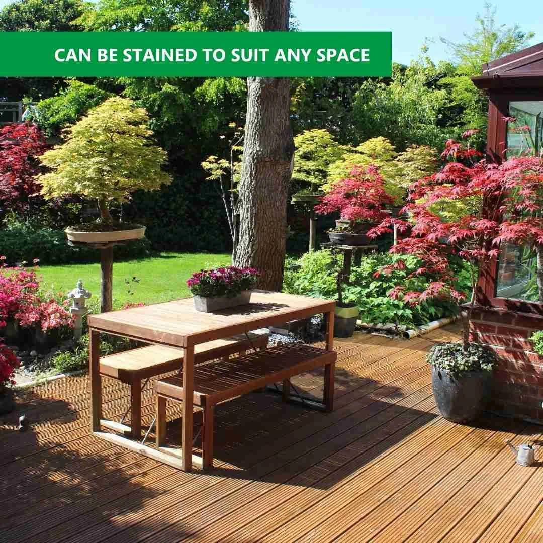 These high-quality timber deck boards are made from sustainably sourced softwood that has been kiln dried and then UC3 pressure treated. The timber is redwood that is sourced from the Baltics, where slower tree growth provides a better quality of timber. Each deck board features a grooved finish on one face, with the reverse being flat and smooth. This allows for easy installation of the flat side, whilst the grooved top aids the removal of water by supply channels for it to flow down. We also supply all the relevant and to complete your deck, as well as for maintaining your deck.