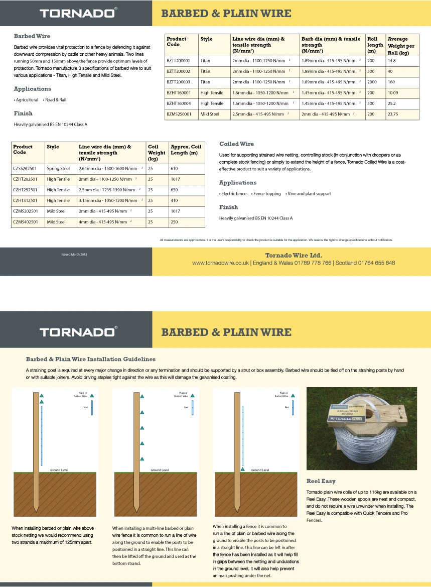 High tensile barbed wire from the UK’s market leader in agricultural, forestry and equestrian fencing. Made in the UK from Tornado wire, this high tensile barbed wire provides vital protection to a fence by defending it against downward compression by cattle or other heavy animals. Barbed wire can also be an important addition to fencing used for infrastructure or rural security applications, helping to deter unwanted climbing. Two lines running 5cm and 15cm above the fence are recommended as the best deterrent and optimum level of protection.